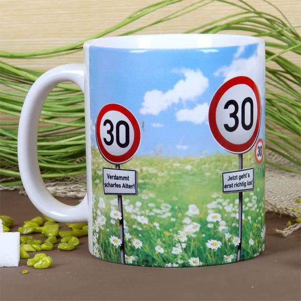 Tasse zum 30. Geburtstag mit Verkehrszeichenmotiv